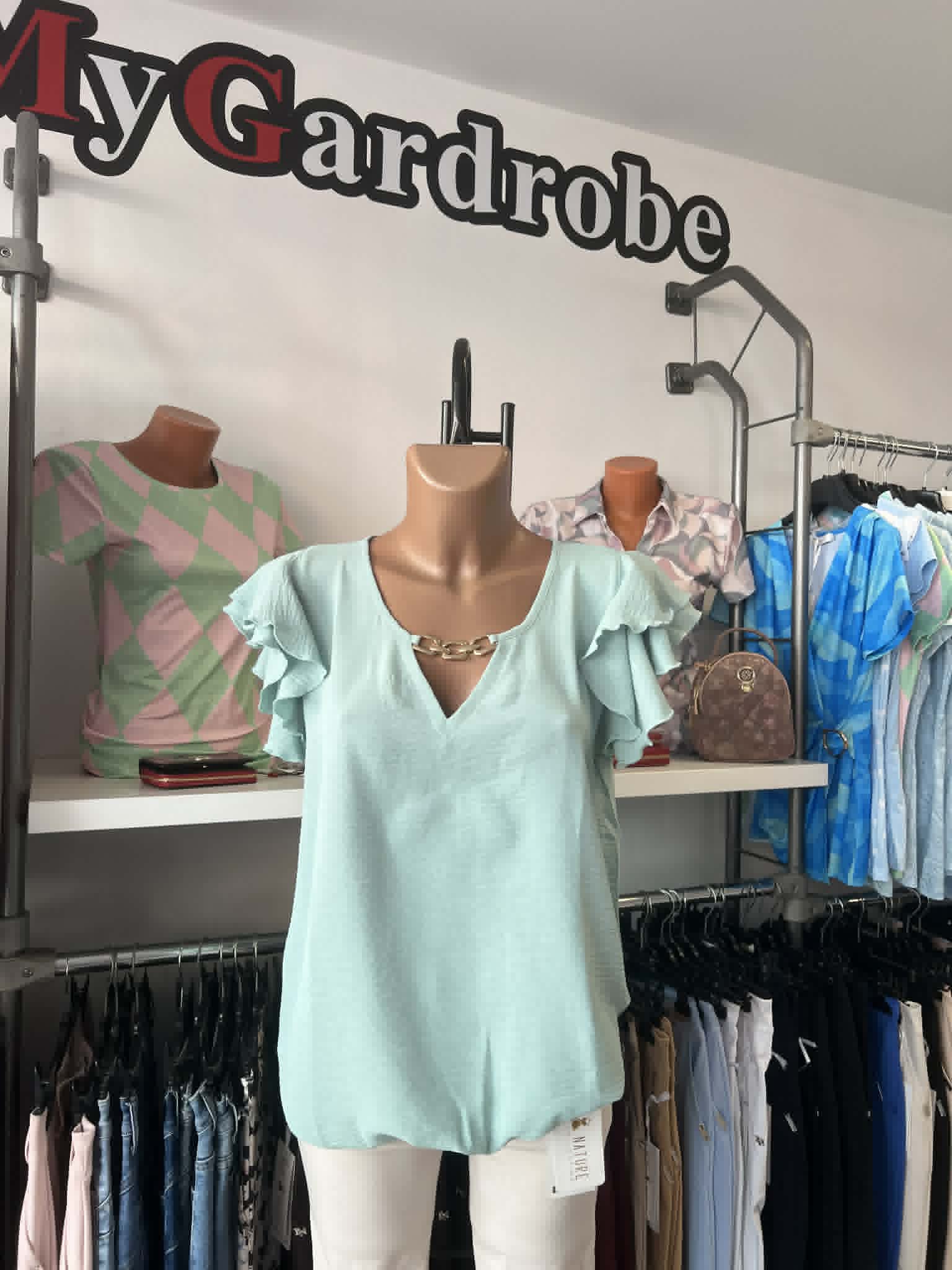 Elöl kivágott, kellékes, bővebb, alul gumis, poliészter anyagú felső.
